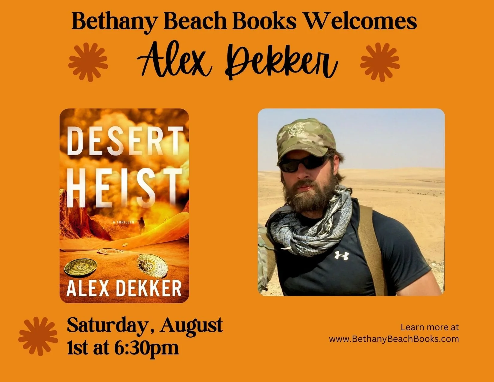 Meet Alex Dekker, author of Desert Heist on Saturday, August 1st at 6:30pm!