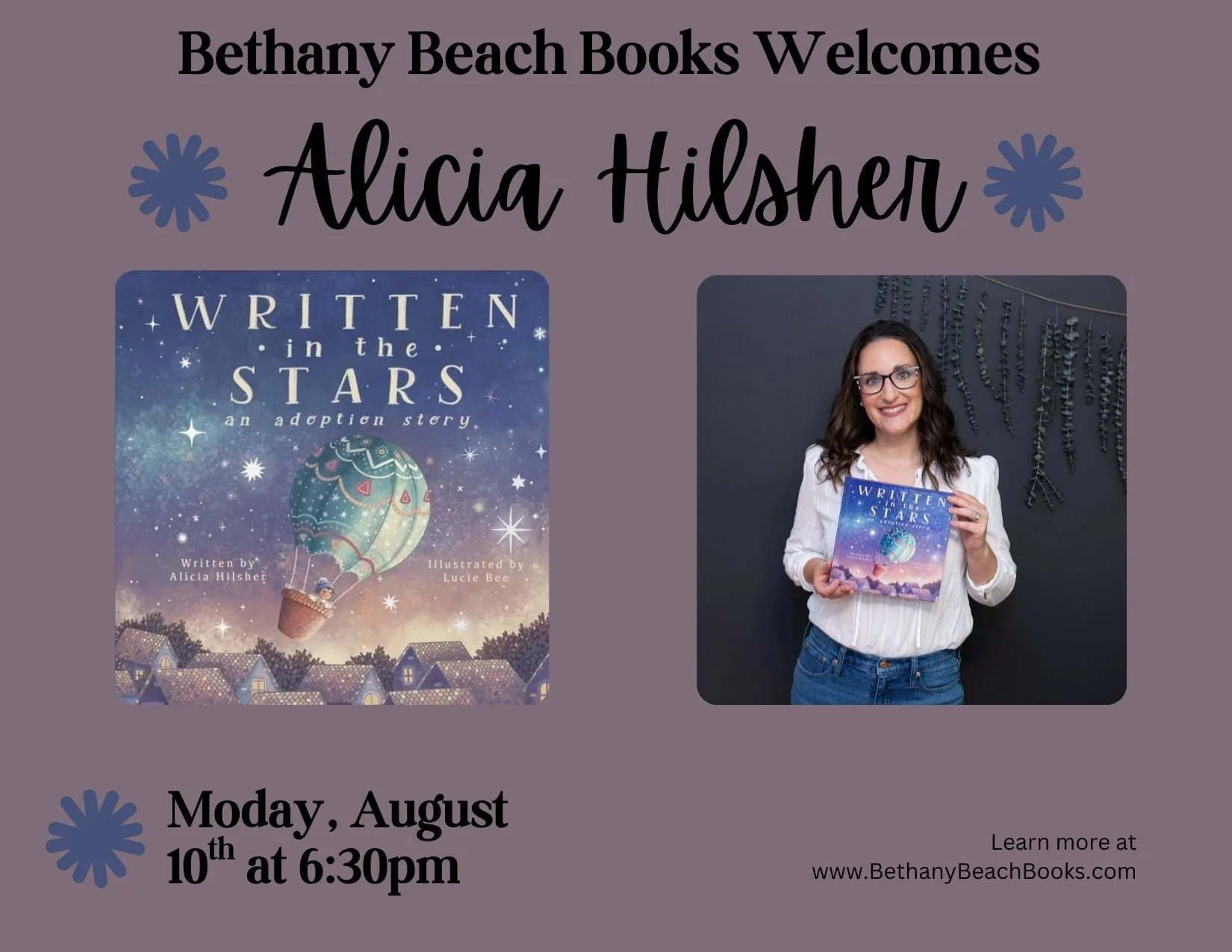 Meet Alicia Hilsher, author of Written in the Stars on Monday, August 10th at 6:30pm!