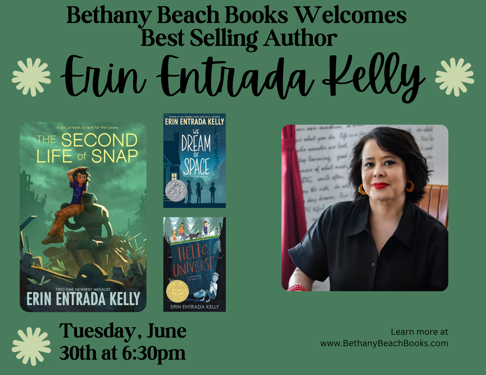 Meet NYT Best Selling Author Erin Entrada Kelly, author of The Second Life of Snap on Tuesday, June 30th at 6:30pm!