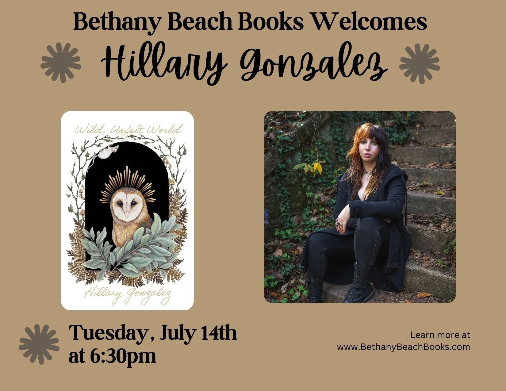 Meet Hillary Gonzalez, author of Wild, Unfelt World, at Bethany Beach Books on Tuesday, July 14th at 6:30pm.