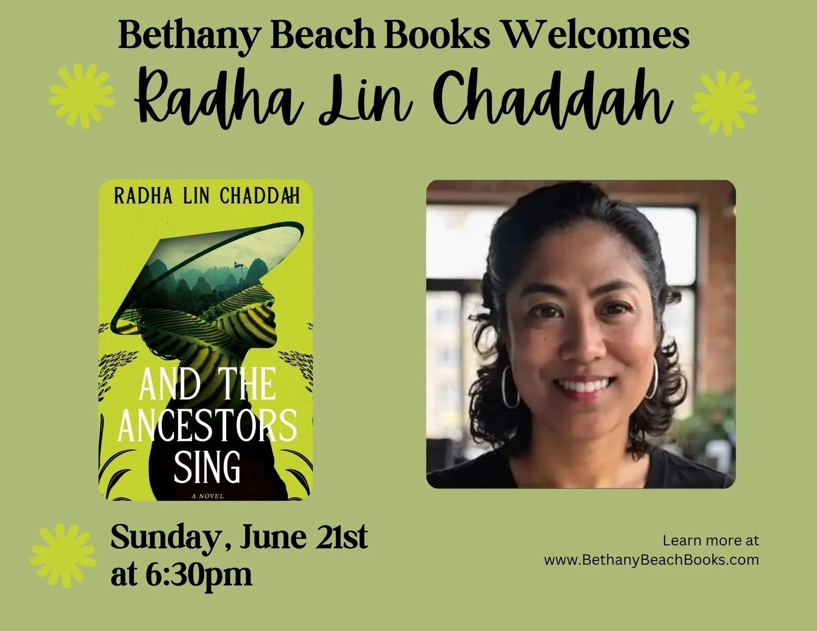 Meet Radha Lin Chaddah, author of And The Ancestors Sing on Sunday, June 21st at 6:30pm!